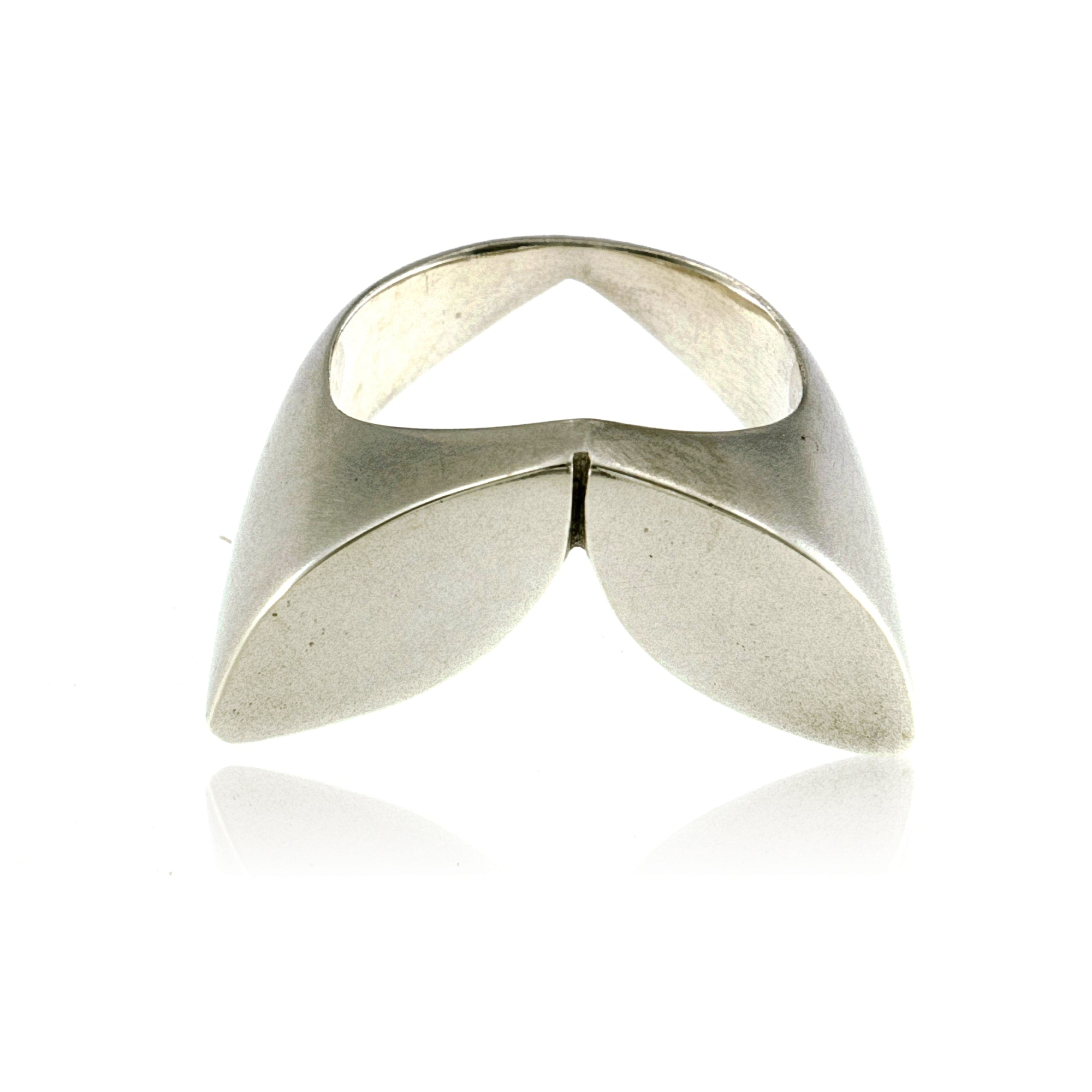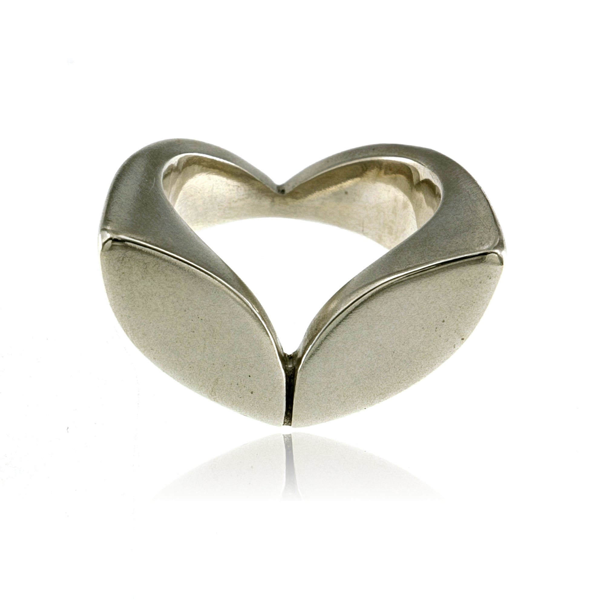 RING SILVER MATTE FINISH BAND WITH 2 BUNNY EARS AND HEART OUTLINE TOP, s. 8.5