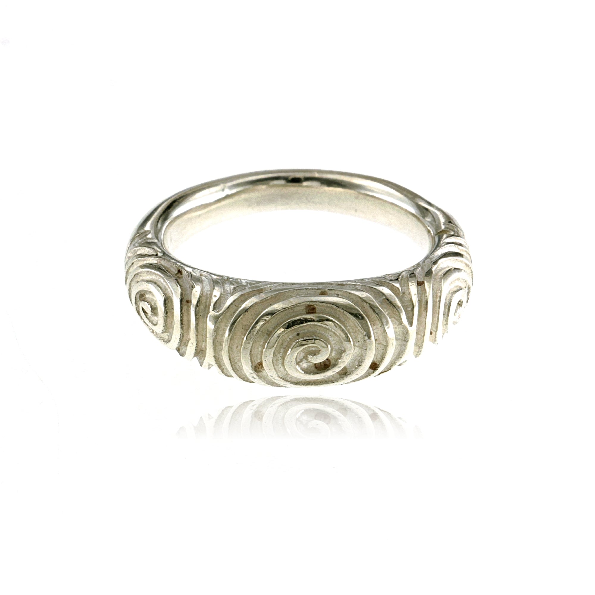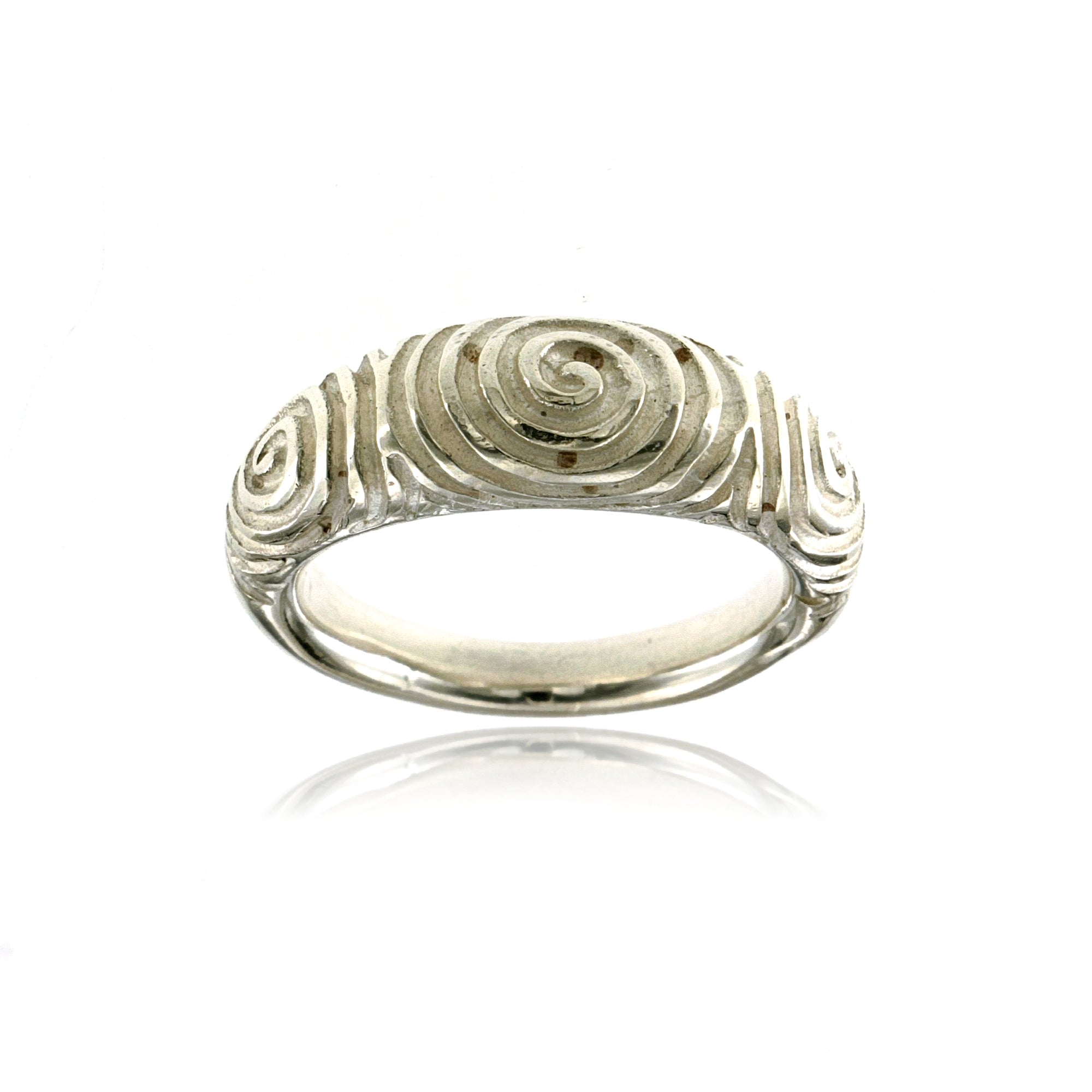 RING SILVER MATTE AND POLISHED FINISH BAND WITH LARGE SWIRL PATTERN, COMFORT FIT, s. 7.5