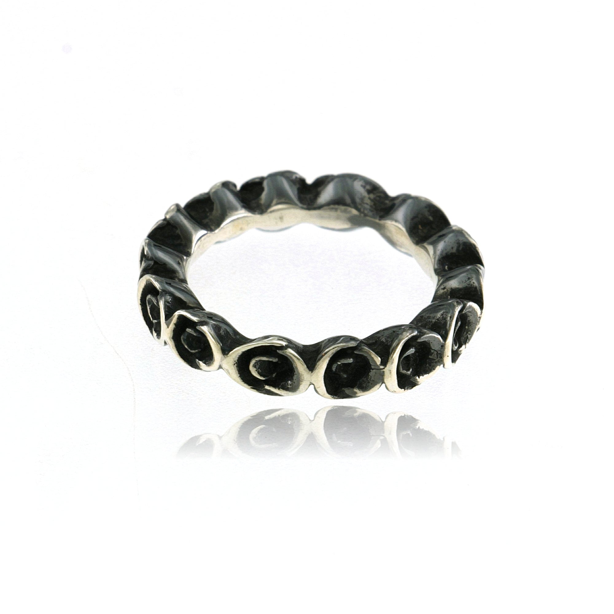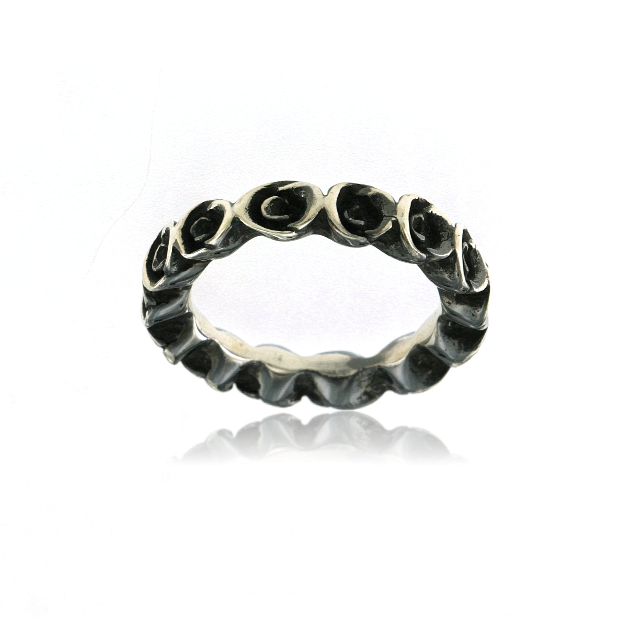 RING SILVER OXIDIZED SHINY FINISH BLACK BAND WITH ROSES, s. 6.5