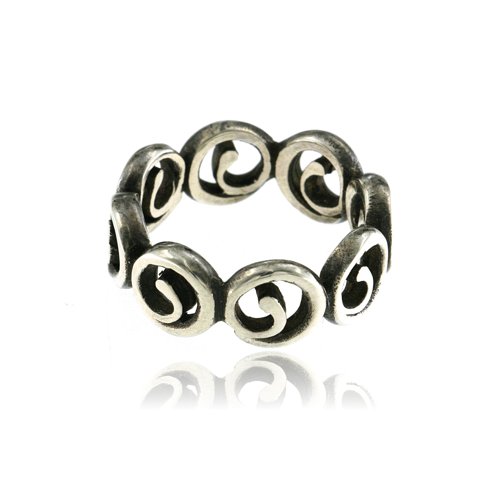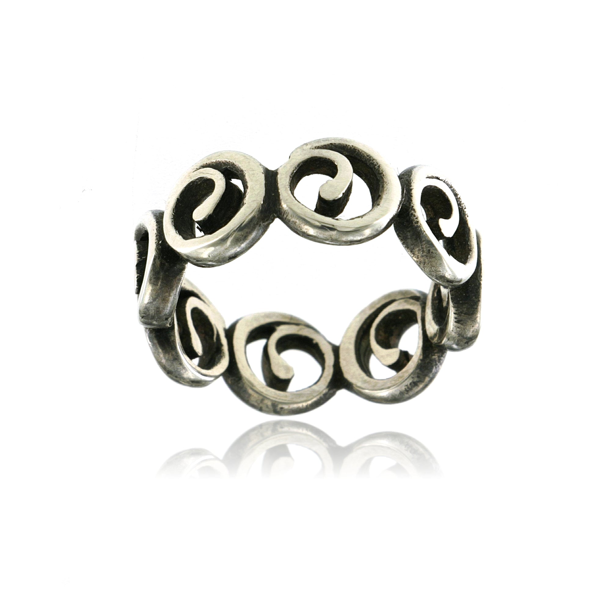 RING SILVER OXIDIZED SHINY FINISH BLACK BAND WITH SWIRLS, s. 7.5